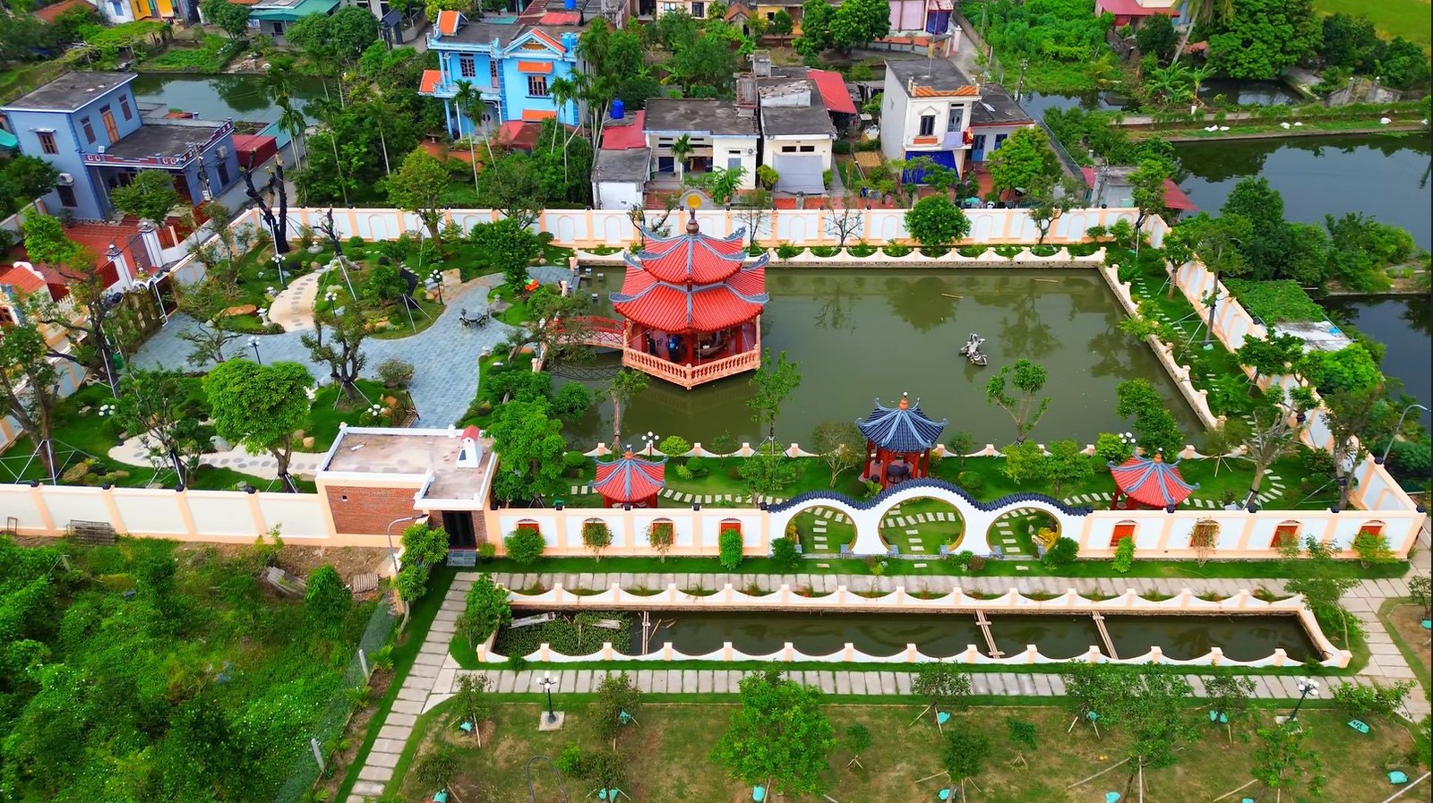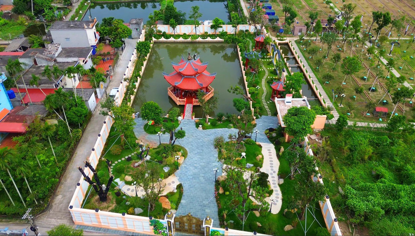 Gợi nhớ hình ảnh làng quê Việt với hàng cau, giàn mướp, ao sen, lối đi lát gạch và những góc vườn trồng rau. Thiết kế sân vườn phong cách Việt đem lại sự mộc mạc, gần gũi và là lựa chọn lý tưởng cho những ai yêu thích không gian giản dị, ấm áp và giàu bản sắc.